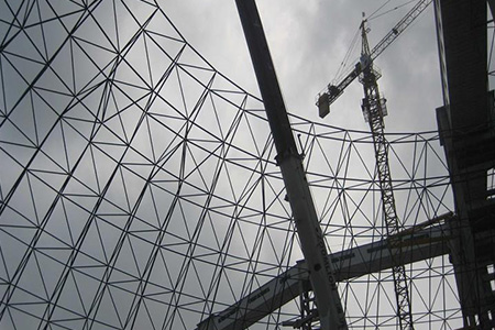 煤棚網架門式鋼架所用的板件很薄,薄可用到4毫米。多薄板的下料應選剪切方式而避免用火焰切割。因為用火焰切割會使板邊產生很大的波浪變形。目前H型鋼的焊接大多數廠家均采用埋弧自動焊或半自動焊。如果控制不好宜發生焊接變形,使構件彎曲或扭曲。