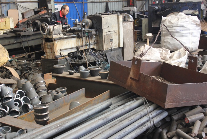 組裝焊接:十字肋板與底板組裝焊接前須打好坡口并將坡口處清理干凈,先用E50XX型Φ3.2焊條打底,然后再用Φ4.0焊條焊接。支座球與十字肋板的焊接須注意以下事項: